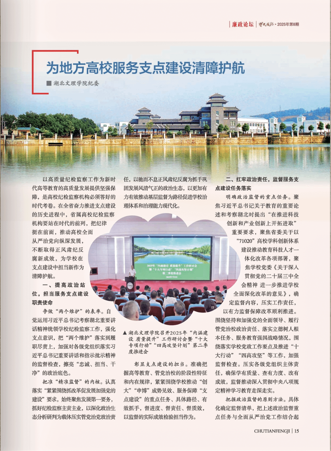 (纪委·监察专员办公室 通讯员 胡旭)近日,中共湖北省纪律检查委员会、湖北省监察委员会主办的刊物《楚天风纪》(2025年第8期),刊发了学校纪委工作经验文章《为地方高校服务支点建设清障护航》。